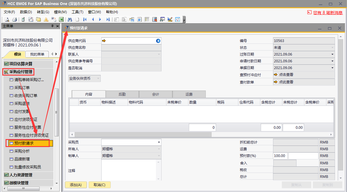 预付款请求操作手册