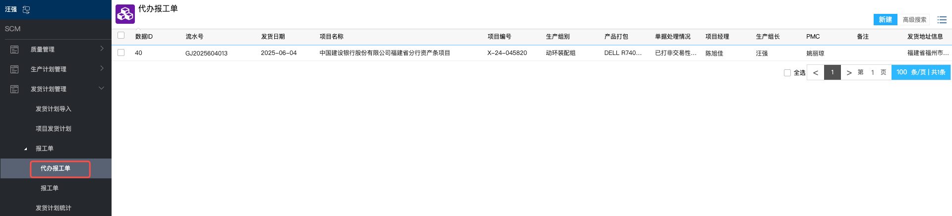 # 1、PMC操作 ## 1.1 发货计划导入 路径: SCM -- 发货计划管理 -- 发货计划导入  下载模板后,编辑内容,编辑完成后,上传文件导入即可。 **备注:模板中“ID”列可空着,不可删除。** ## 1.2 计划查看 路径:SCM -- 发货计划管理 -- 项目发货计划  # 2、生产组长操作 ## 2.1 代办报工单 路径:SCM -- 发货计划管理 -- 报工单 -- 代办报工单  需要报工的计划都会展现在此页面。 ### 2.2.1 报工方式1 点击流水号,可进入该项报工页面。   需报工栏位: 1、完工工时 2、完工数量 3、打包工时 4、异常工时 填写信息后提交即可。 ### 2.2.2 报工方式2 路径:SCM -- 发货计划管理 -- 报工单 -- 报工单  点击“流水号”右侧放大镜按钮“”,选择需要报工的项目   同上述方式1报工操作,填写信息后提交即可。 **备注:若存在异常工时,则需要品质审核。** # 3、报表统计 路径:SCM -- 发货计划管理 -- 发货计划统计
