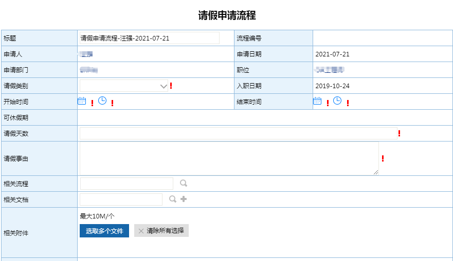 - 开始时间: 请假开始时间,必填项,时间一般8:30。